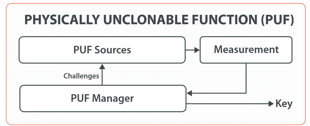 This output can be used as a cryptographic key or a device identifier. PUFs rely on the fact that the exact physical properties of a device, such as the physical and electrical characteristics on a chip, can never be replicated exactly. This makes PUFs a highly secure method for protecting sensitive information and ensuring device authenticity. PUFs are often used in a wide range of applications, including secure boot, secure storage, and secure key generation.